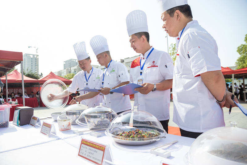 比赛现场,选手们八仙过海各显神通,切削剁砍、煎炸烹炒,十八般武艺齐上阵,配菜、下油、下料、颠锅、调味、关火、摆盘,环环相扣,如行云流水,诱人的香气也一阵阵扑面而来。由各星级酒店的大厨和群众代表组成的专业评委,也在现场对各菜品的外观、口感、创意等方面进行评比打分。评委周昌富说我们从这个色香味,这个摆盘和这个菜名来打分,像有的菜的颜做的比较好,味道都很好,摆盘也很好,给人一个好的印象。