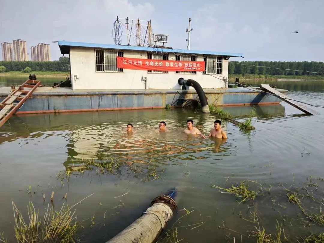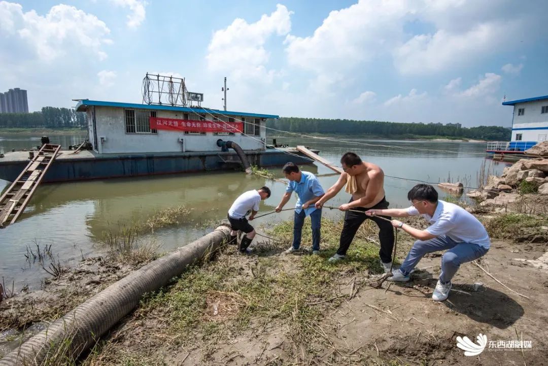 头顶烈日、泡在水里,网格员们抬起口径30厘米、长达2米的沉重铁管,对接后逐一固定螺栓。“他们上岸时,浑身都是泥浆。”吕顺鹏了解到,汛期江水起落频繁,社区工作人员有时一周要下水3次。水位大降时,还要下水推拉泵船以防搁浅。