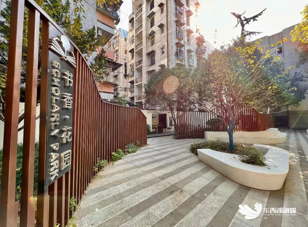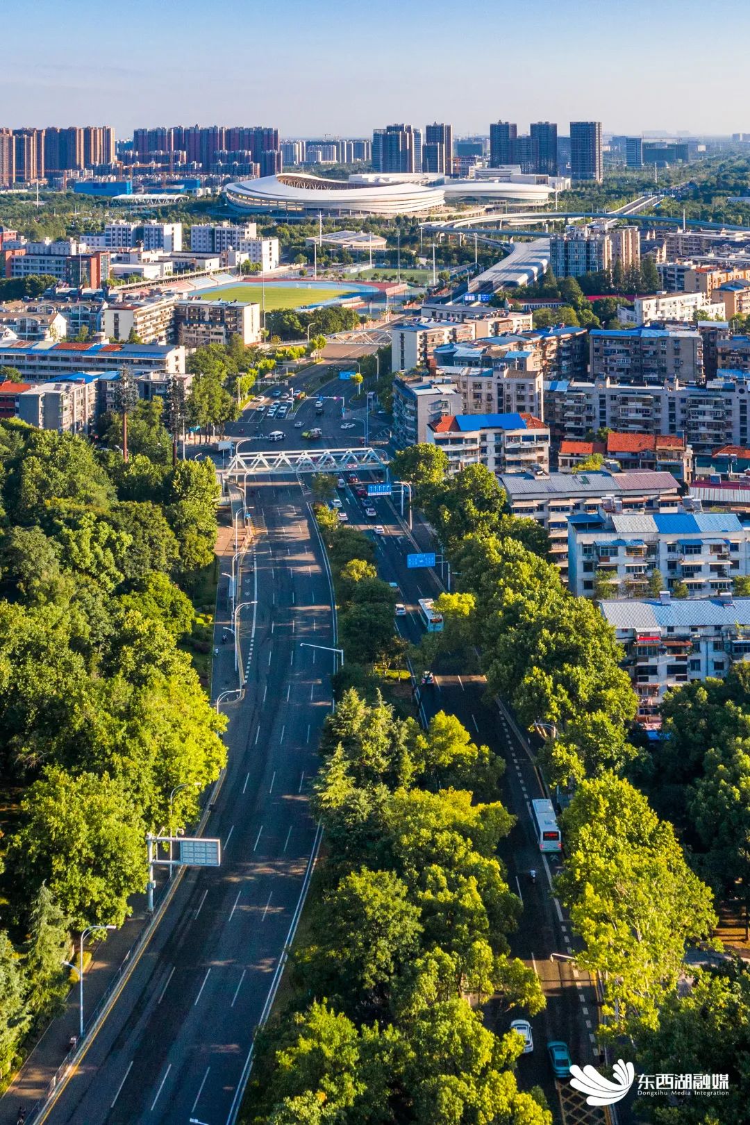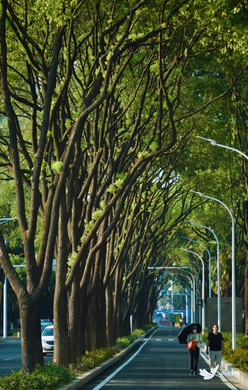 绿树成荫掩映亭台楼榭,车水马龙共伴如盖香樟。身处闹市,耳畔鸟鸣不绝;一路烟火,流水潺潺而过。