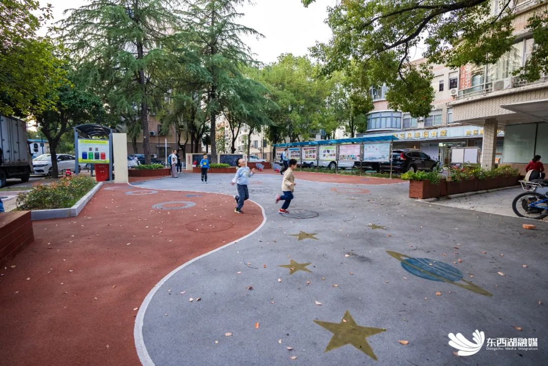 时至秋冬,树顶藏不住阳光。80后爸爸任辉明喜欢带5岁女儿沐着阳光在社区中央公园游园,“前期社区征求我们意见,改造后的公园有了青春元素,增添了儿童游乐、健康绿道,更契合年轻人需求。”
