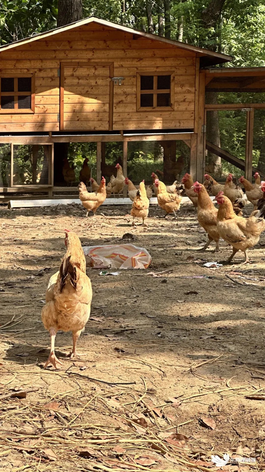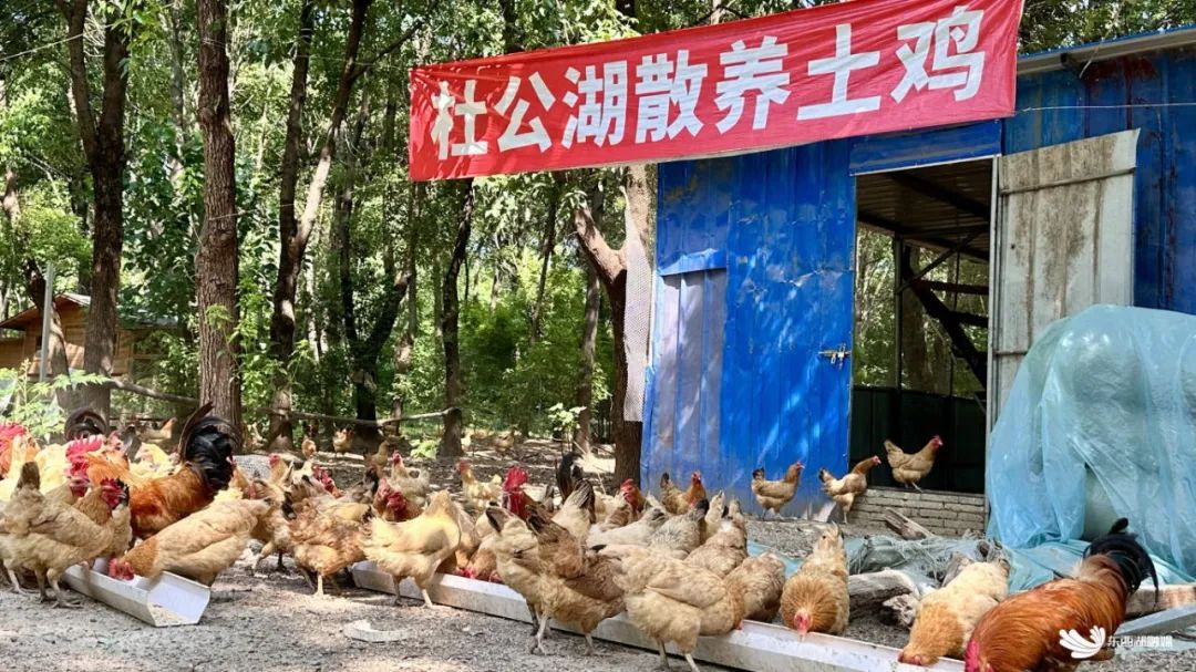一群群毛色鲜亮的江汉鸡,或在林间悠闲觅食,或在枝头引吭高歌,勾勒出一幅生动的田园画卷。