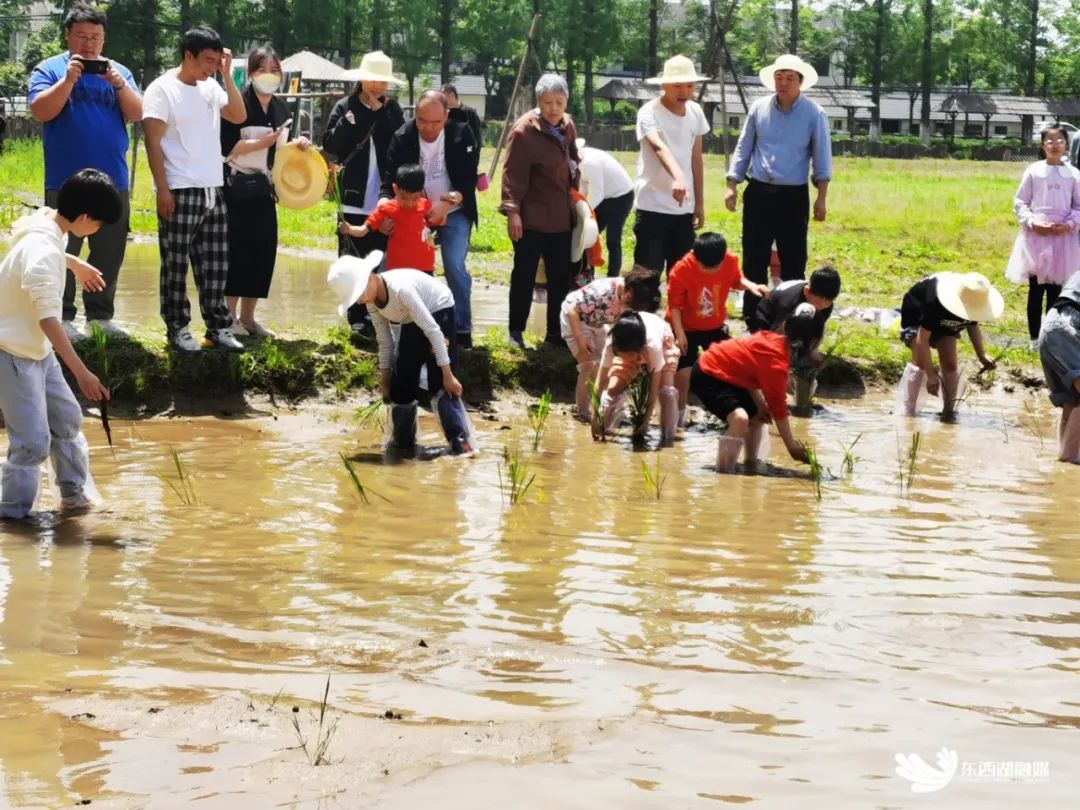 村湾的孩子们暑期在水田里体验农事。