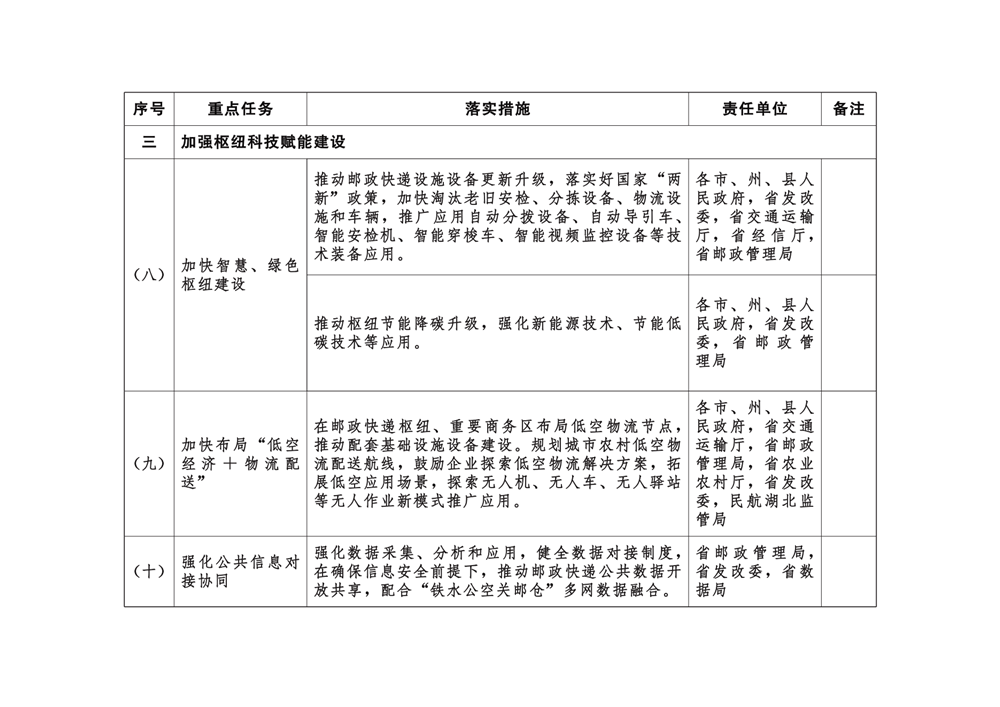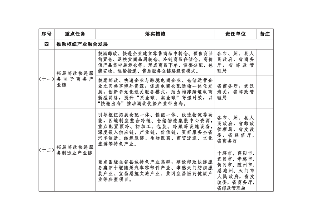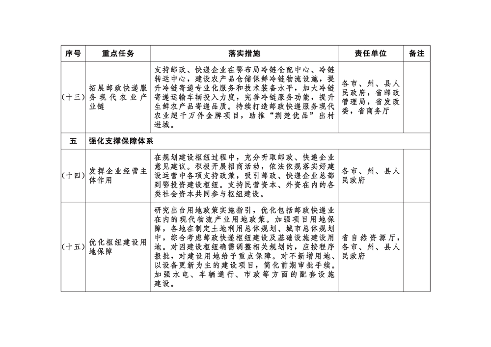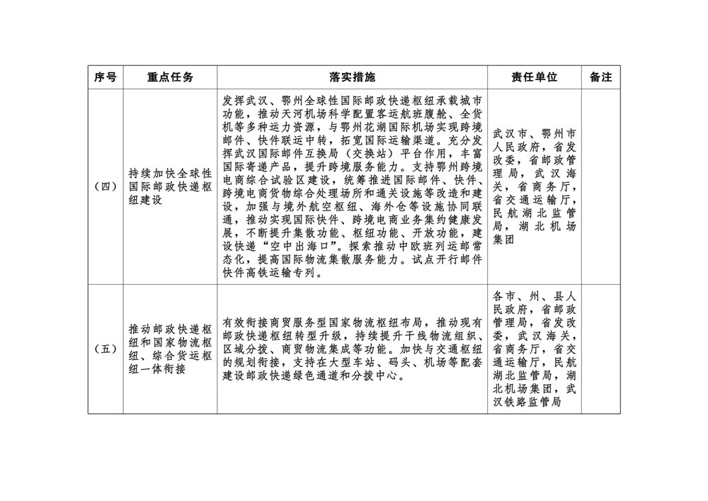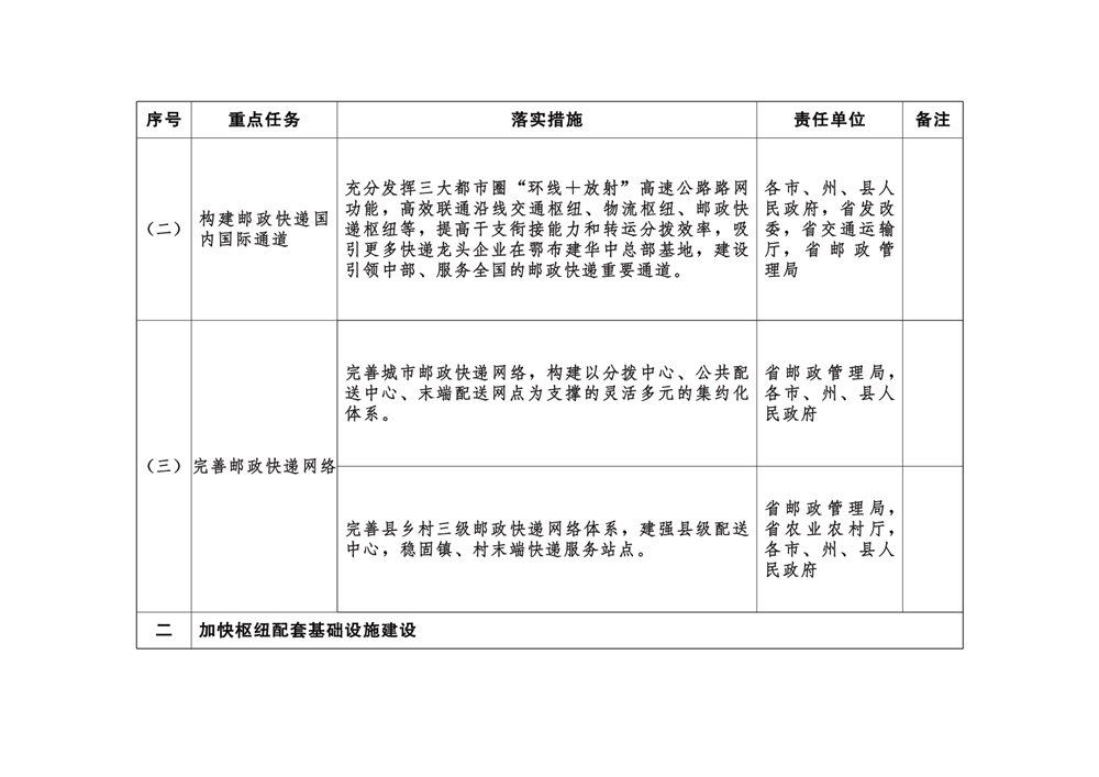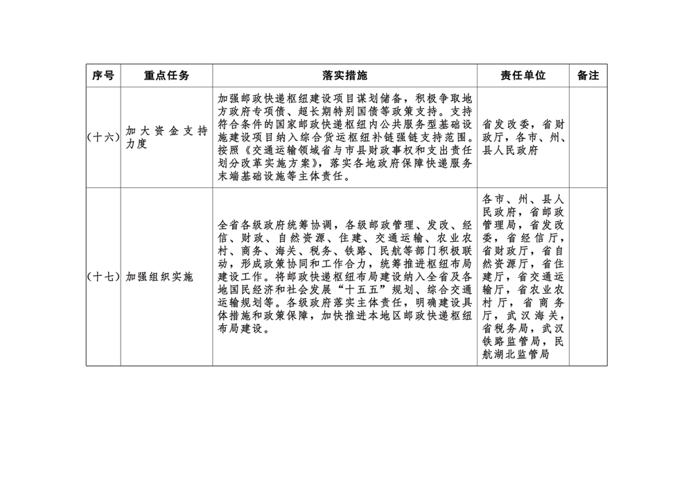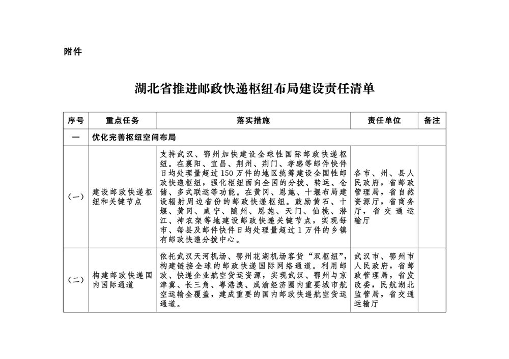 附件:湖北省推进邮政快递枢纽布局建设责任清单