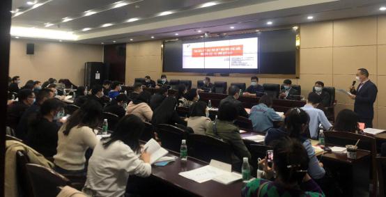 2020年11月13日下午, 武汉市东西湖区开展了“保护知识产权,促进科技成果转化”的主题培训。本次培训由东西湖区市场监督管理局主办,武汉知识产权保护(东西湖区E智造)工作站承办。来自全区光电子信息、食品饮料、装备制造、生物医药等行业的包括央企、上市公司等四十余家企业代表参会。