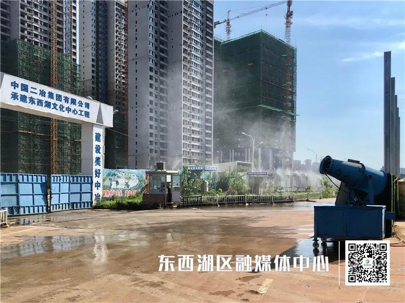 东西湖文化中心项目执行经理芦俊告诉记者,我们现场设置了扬尘检测系统和噪音监控系统,喷淋24小时开启,马路每间隔2小时喷一次。