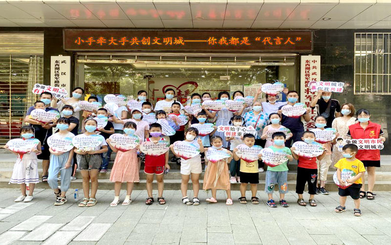 孩子、家长争当文明武汉代言人 图片来源:将军路社区居委会