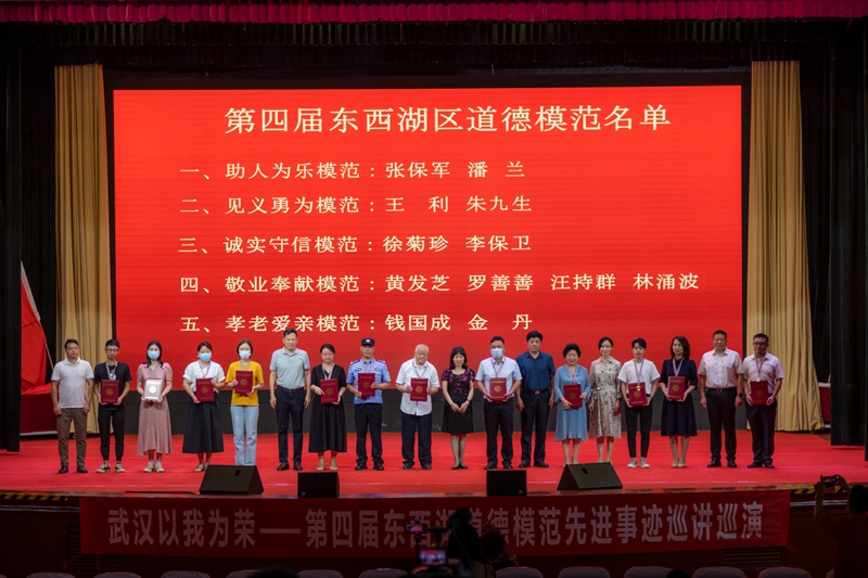 近年来,东西湖区常态化开展道德模范、楷模、身边好人评选活动,多人获得中国好人、湖北好人、荆楚楷模、武汉市道德模范等荣誉。下一步,全区将深化开展道德模范先进事迹巡讲巡演,用群众喜闻乐见的形式广泛传播道德模范先进事迹,进一步提高居民群众的思想觉悟、道德水准、文明素养,深入推进“武汉以我为荣”文明实践活动,为创建全国文明典范城市作出东西湖贡献。(东西湖区委文明办)
