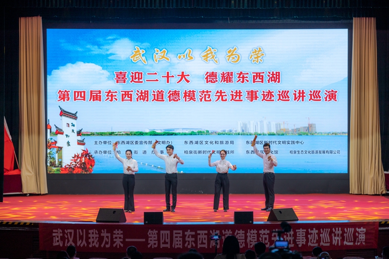 喜迎二十大,德耀东西湖。为大力宣传道德模范先进事迹,深化拓展“武汉以我为荣”文明实践活动,6月20日下午,东西湖区举办“武汉以我为荣”——第四届道德模范先进事迹巡讲巡演,用榜样故事进一步营造崇尚先进、学习先进、争当先进的良好氛围。东西湖区委常委、宣传部长王烁参加活动。