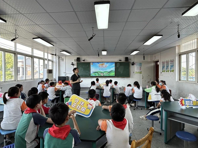 “法润童心”巾帼乡村普法活动走进辛安渡乡村小学。图片来源:极目新闻