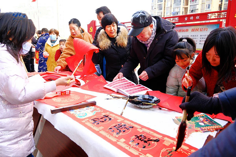 居民现场写福字。图片来源:极目新闻