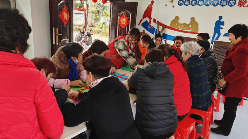 2月18日,为丰富社区老年人的精神文化生活,促进老年人之间的交流与互助,东西湖区东山街道东新社区联合东山街道社工站、汉德社工联合养老服务公司共同开展老年人互助小组活动第二节“结缘互助”,通过手工编织中国结让老年人体验传统手工艺术的魅力。