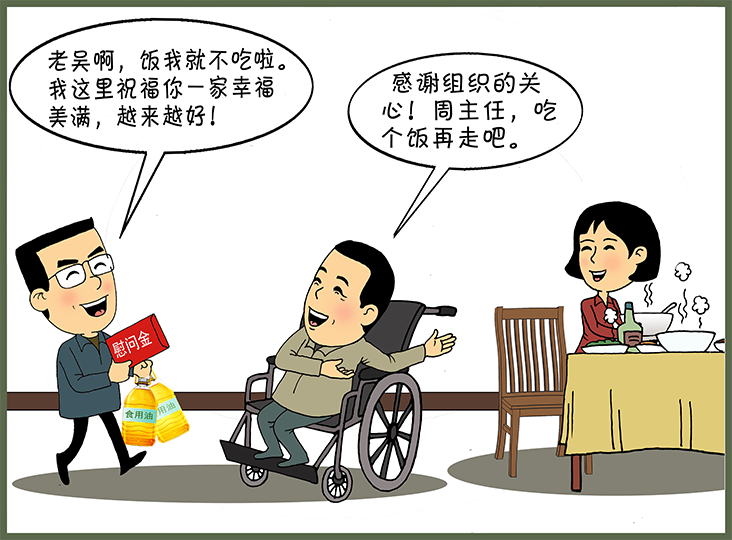 问:李主任,我在开展慰问工作时,经常遇到慰问对象热情邀请我到家中就餐的情况,请问我可以参加吗?