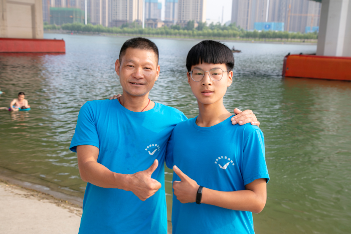 7月14日,罗朝海、罗奕豪父子参加渡江节前最后一次游泳集训
