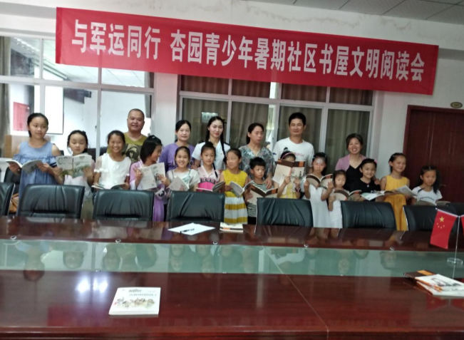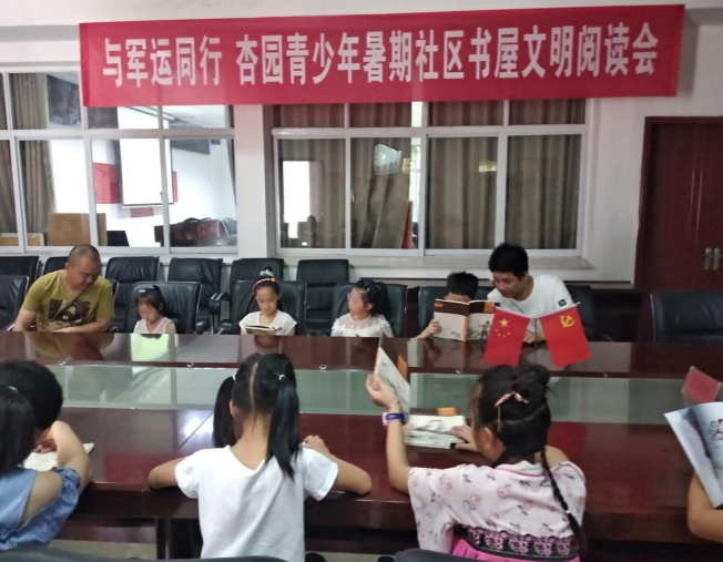 为丰富社区青少年暑期的精神文化生活,提高综合素质,杏园社区于7月17日下午组织开展了 “与军运同行 青少年暑期社区书屋文明阅读”为主题的读书会,吸引了辖区内的青少年儿童和家长朋友们踊跃参与。