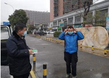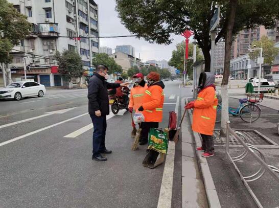他是长青街城管环卫所所长朱汉棋,近段时间来,他每天巡查的工作职责之一:向居民宣传健康防范知识,劝导尽快回家,向有需要的人赠送口罩。