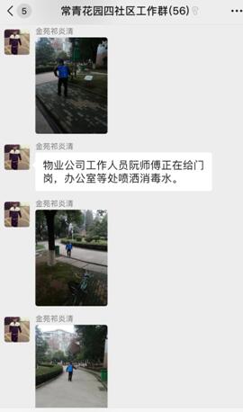 “物业公司的阮师傅正在给门岗、办公室喷洒消毒水。” 祁炎清用一句话和数张喷洒消毒剂的照片,避免了居民的担心与恐慌,充分发挥居民骨干“安民心、顺民意、为民行”的积极作用。