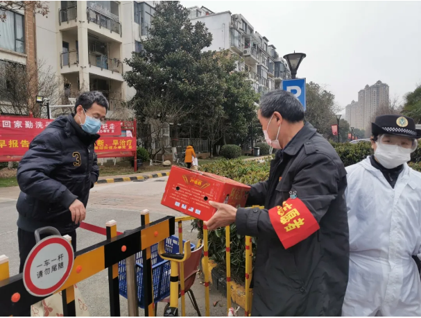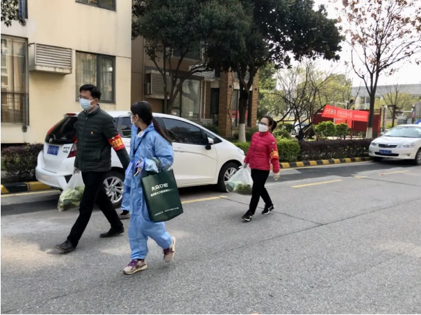 针对独居老人、行动不便、生活困难的居民,志愿者与物业工作人员一起将爱心菜等生活物资送到居民家门口。