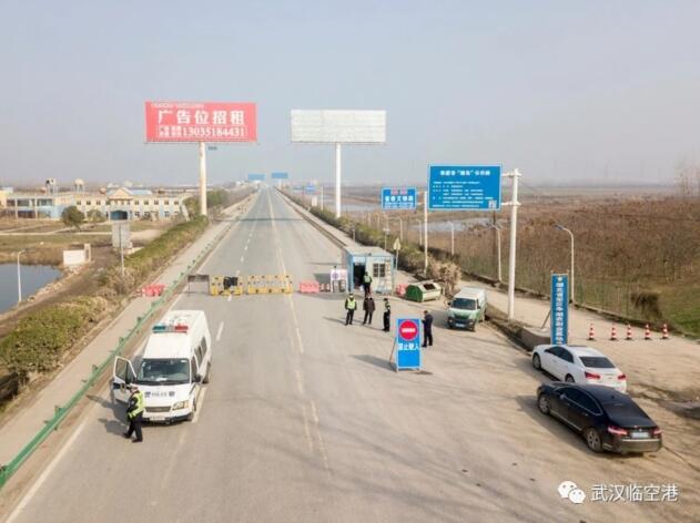 作为武汉西大门的沦河桥,没有了平日里车来车往的繁忙景象,现场也由交管部门设立了卡口。特殊时期,只有取得了通行证的车辆在确认随行人员体温正常后才可通行。