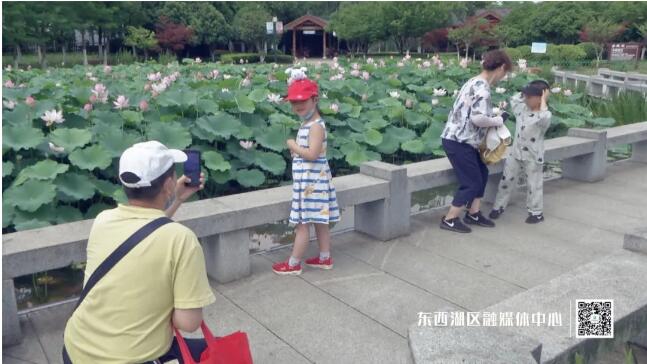 夫妻俩告诉记者,每年的这个时候,他们都要步行到金银湖湿地公园欣赏荷花的美景,为了不错过与荷花的“约会”,他们今天早早地来到公园,拍照游玩。