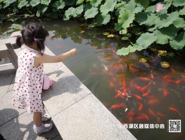 在园区的古韵梦兰景区,荷塘与金银湖相邻显现一派“一水连天,荷叶田田”的景象,吸引了不少游人拍照留念。