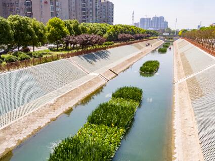 “利用水生植物来吸收水体污染物,防止水体富营养化,同时也能形成一定的景观效果。”区水务和湖泊局相关负责人解释道,除水生植物外,沟渠中还装有纳米曝气装置,这种装置能有效提升水体中的含氧量。同时,沟渠中的生态促生器及微生物在线反应器,通过配置营养液,能够培植更多微生物。