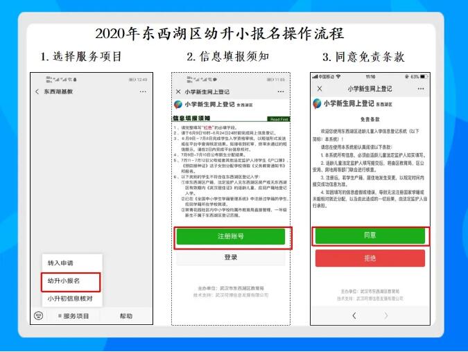 登记方式:网上登记。关注“东西湖基教”微信公众号,选择“服务项目”→进入“幼升小报名”