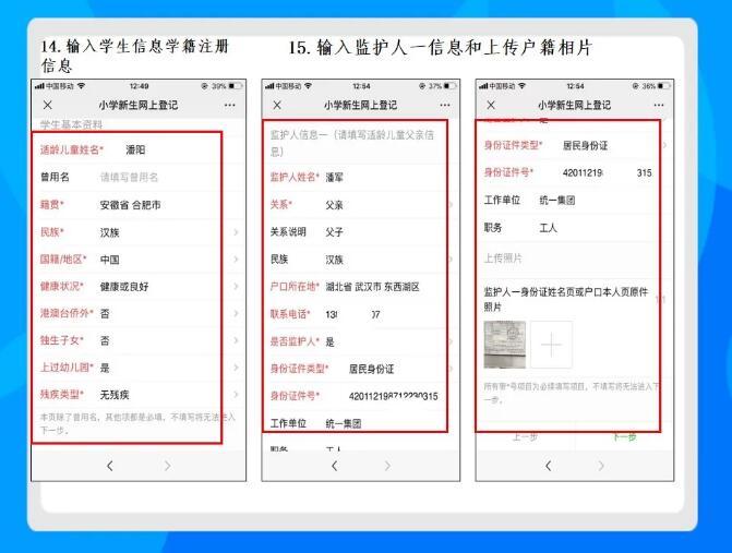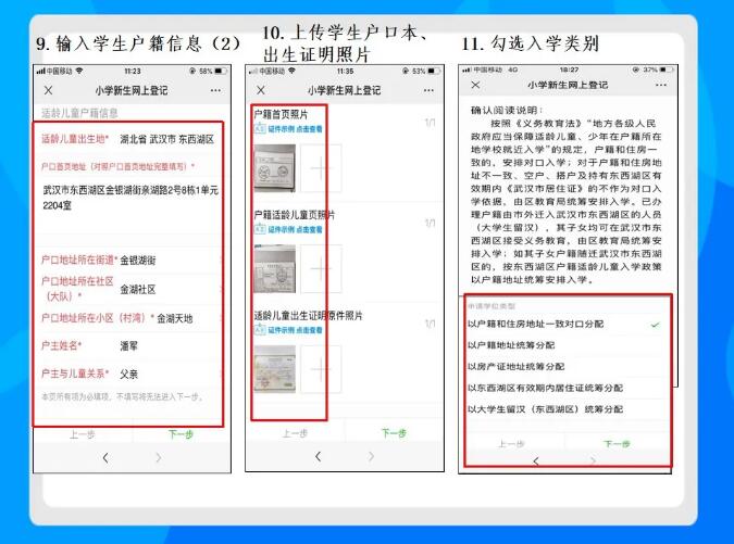 提示:因上传信息与公安、房产部门核查不一致或输入文字资料与图片资料不一致的,会耽误最佳的分配时间,造成无法就近入学。例如:如果您的户口和房产资料可以对口吴家山三小,区教育局在核查资料时,法定监护人网上提交的材料与核查信息不符,区教育局视为法定监护人放弃吴家山三小学位,造成无法就近入学或不予分配。