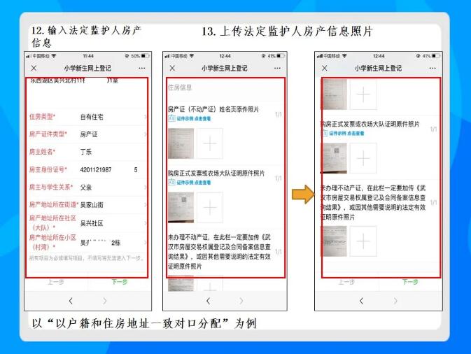 法定监护人暂未办理房产证(或不动产证),购房发票已在东西湖区房产部门注册登记,在网上拍照上传购房发票和在“未办理不动产证,在此栏一定要加传《武汉市房屋交易权属登记及合同备案信息查询结果》,或因其他需要说明的法定有效证明原件照片”加传《武汉市房屋交易权属登记及合同备案信息查询结果》。