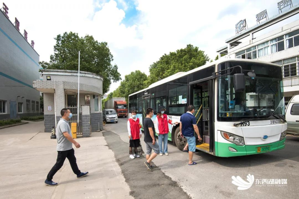 滨江大队租用公交车接送企业员工往返核酸检测点