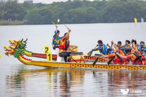 参赛者表示,在杜公湖湿地公园参与龙舟赛别有风味。