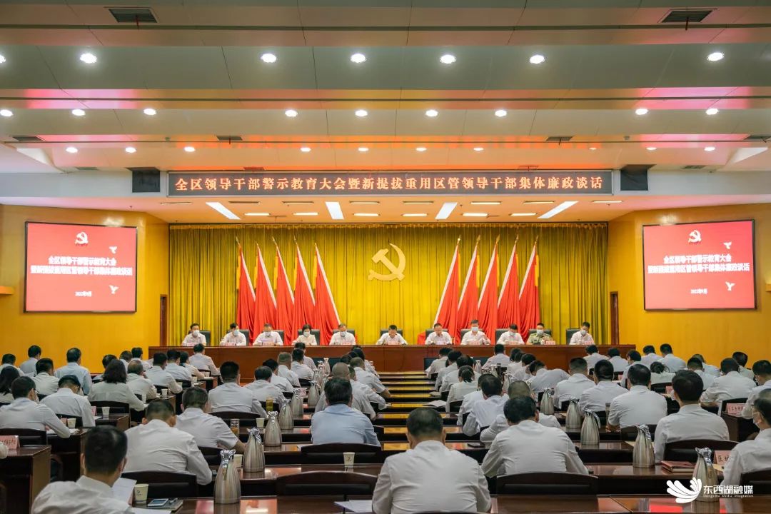 他强调,要深入学习习近平总书记关于党的自我革命战略思想和全面从严治党重要论述以及考察湖北武汉重要讲话精神,认真贯彻落实党中央全面从严治党决策部署和省市干部警示教育大会精神要求,发扬伟大自我革命精神,把我区全面从严治党不断向纵深推进,为加快打造"中国网谷"提供坚强保障,以实际行动迎接党的二十大胜利召开。
