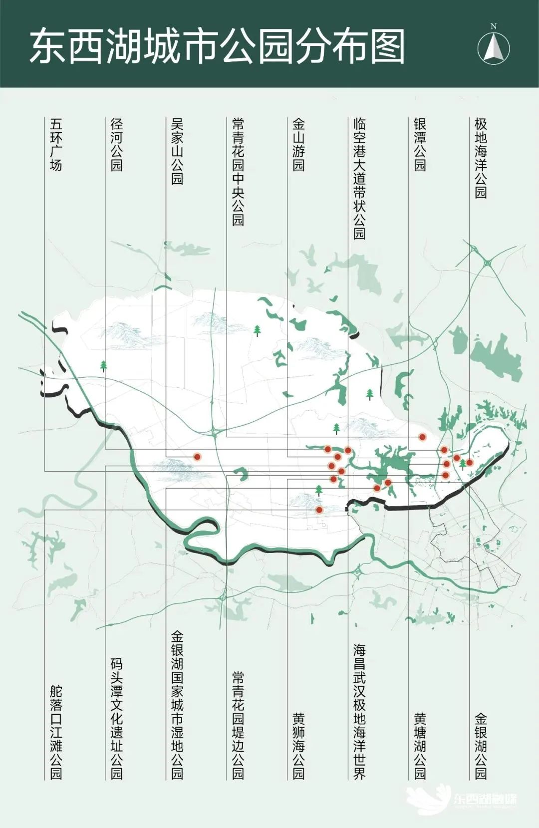 放眼整个东西湖,61个公园如星辰般散落,26个姿态各异的湖泊流光溢彩,4条河流在境内奔腾不息。