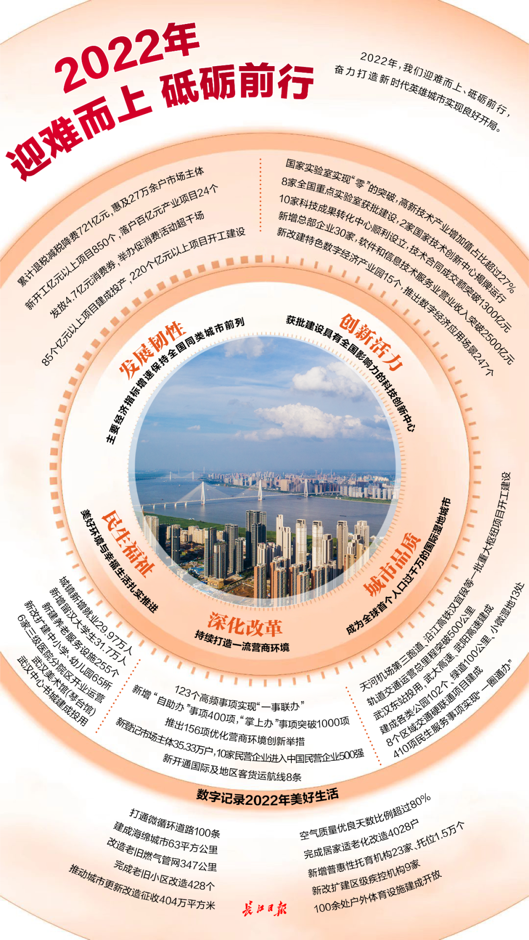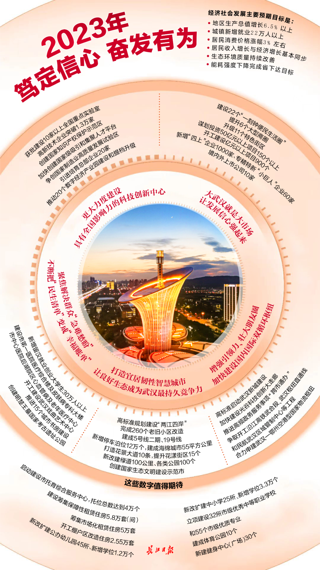 1月5日,武汉市第十五届人民代表大会第二次会议开幕。武汉市政府工作报告回顾了2022年工作,并对2023年的重点工作做出安排。