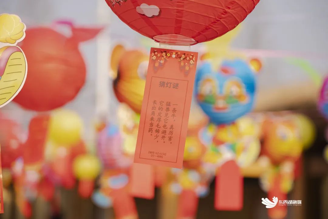 “猫脸老大爱吃肉,生性威猛王者兽。打一动物。”“老虎!”从灯笼上摘下灯谜,市民争先恐后报出答案,答对后,工作人员增上一张抽奖券,在活动入场处参加“红包盲盒”环节,一早从市区赶来元宵节活动现场的市民李园抽中了一张“一等奖”,奖项为价值1288元的“愿驿木屋住宿券”。