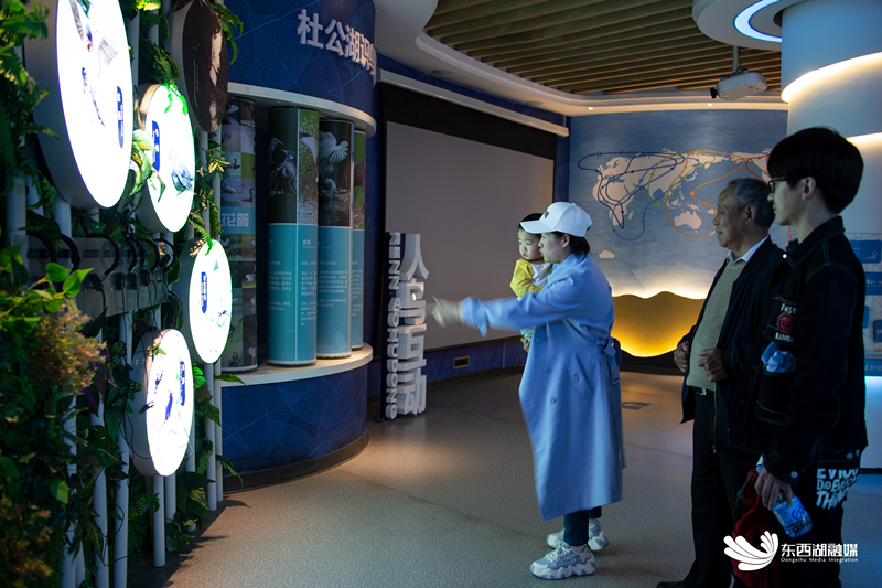 这里,不仅有杜公湖水系水文的概况、湿地五大功能的介绍,更有听音识鸟、模拟鸟类动作现场互动体验……是大自然科普亲子游绝佳去处。