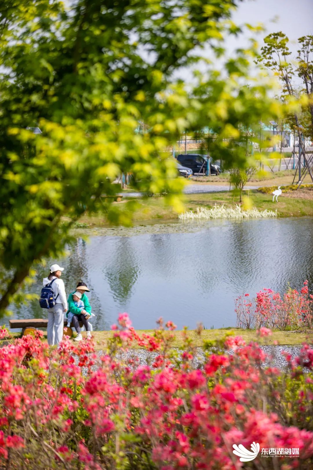 凭湖远眺,点点白帆随风荡漾,水田、苇荡、沼泽尽收眼底。沿绿道“静音”赏游,目睹苍翠绿意,耳闻鸟语轻吟。走累了,再铺开随身带的野餐布,在临湖的草坪上席地而坐,与春光和自然为伴。目之所及,是一片绚丽的杜鹃花海。
