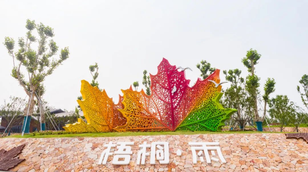 理水、造林、营城,构建生态绿肺,创建乡野梯田、湿地花坡、丛林绿野、静谧之深四种自然之境,这里描绘着“百年梧桐金满地,十里画廊赏繁花”的生态画卷。