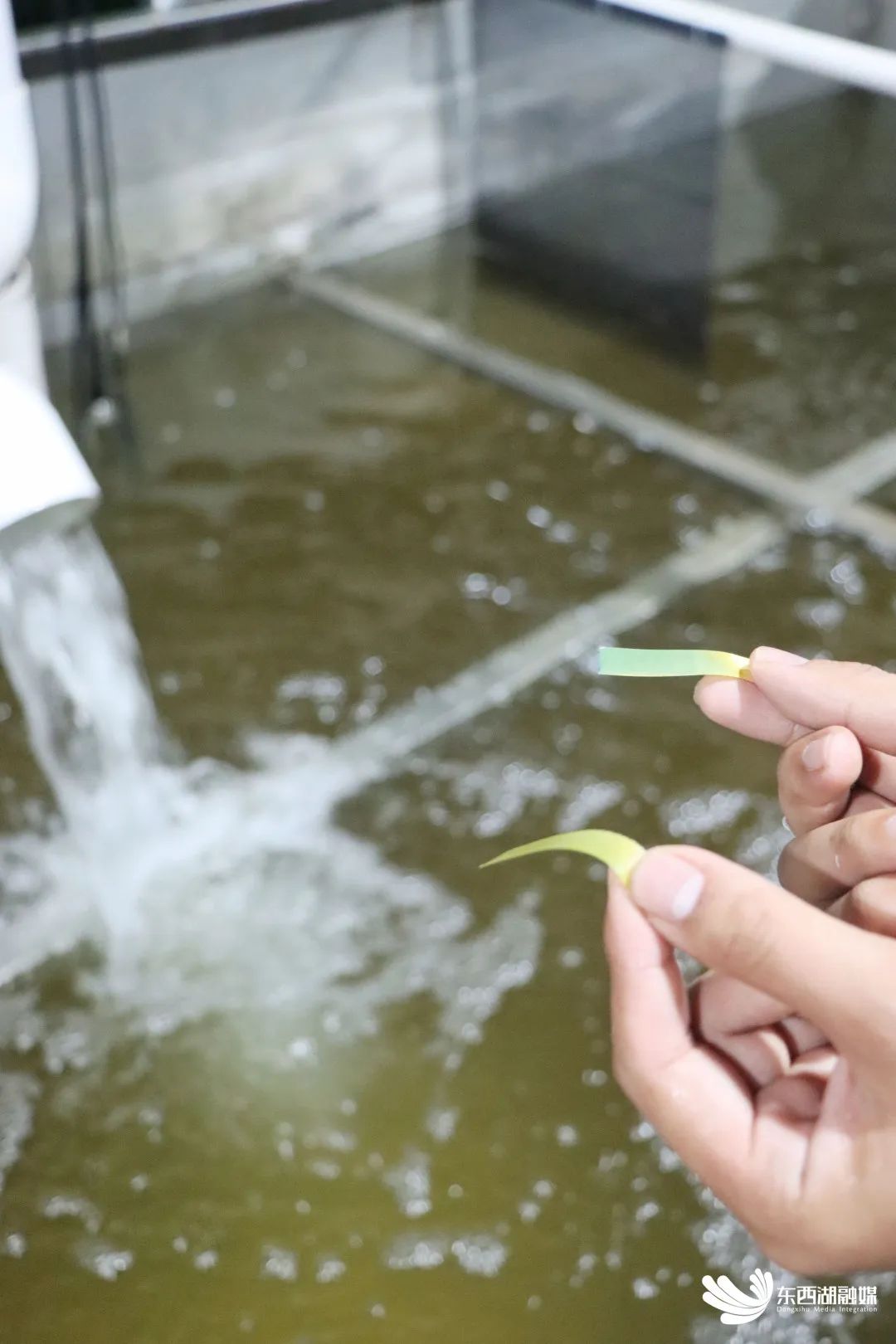 今年年初,李亚武团队来到了汇春合作社,买材料、装水管、搭实验室......历时4个月,一个工厂化养殖基地初具规模。通过反复调试和系统性优化,团队成功让隔膜电解净水设备升级为大型循环水养殖尾水处理系统。记者在现场看到,从养殖桶内流出的水进入处理系统之前颜色呈现褐色、略浑浊,但通过纳米电解隔膜达到净水区并经过处理后,水体立马变得干净清澈。
