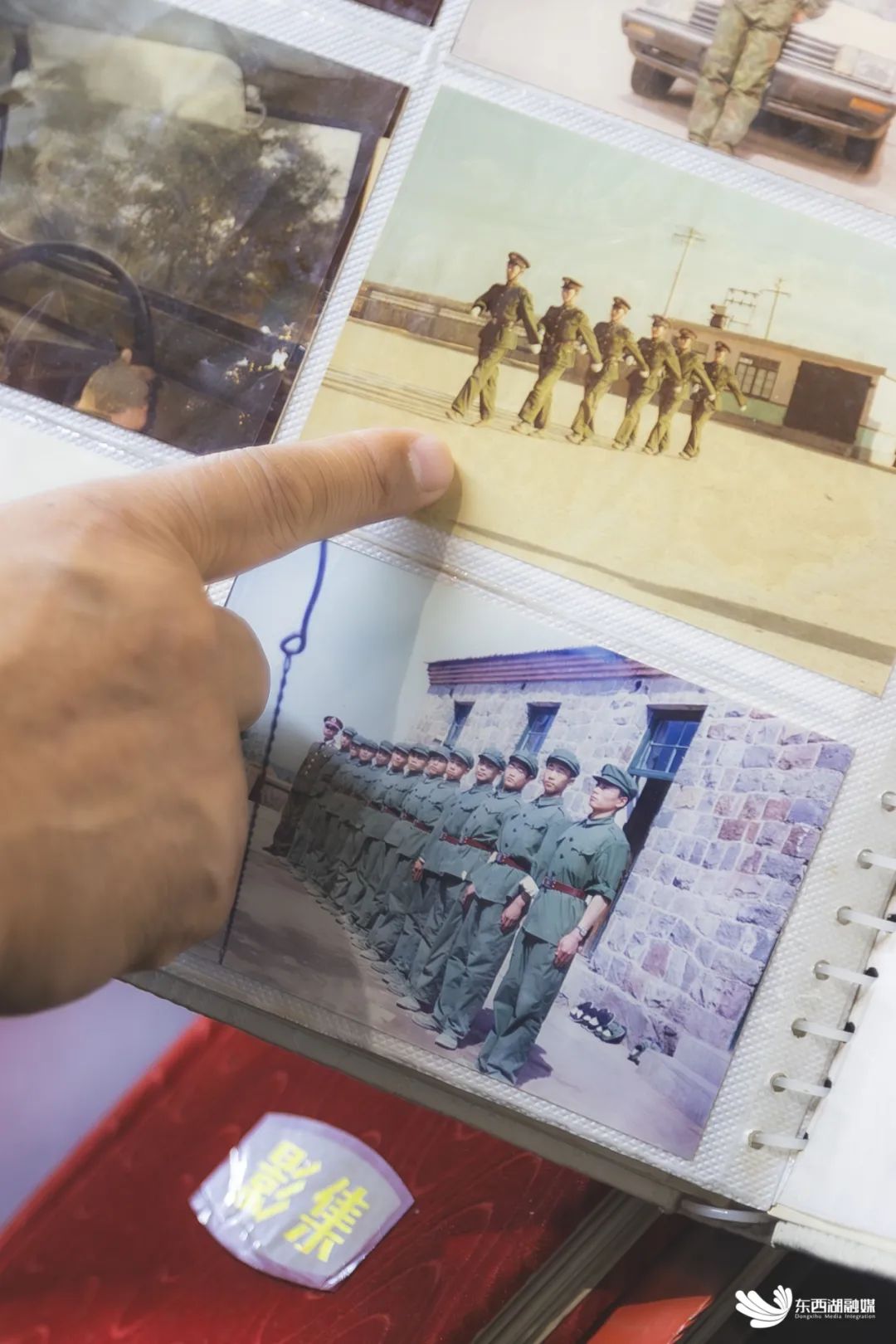 李定胜翻看相册回忆部队生活。