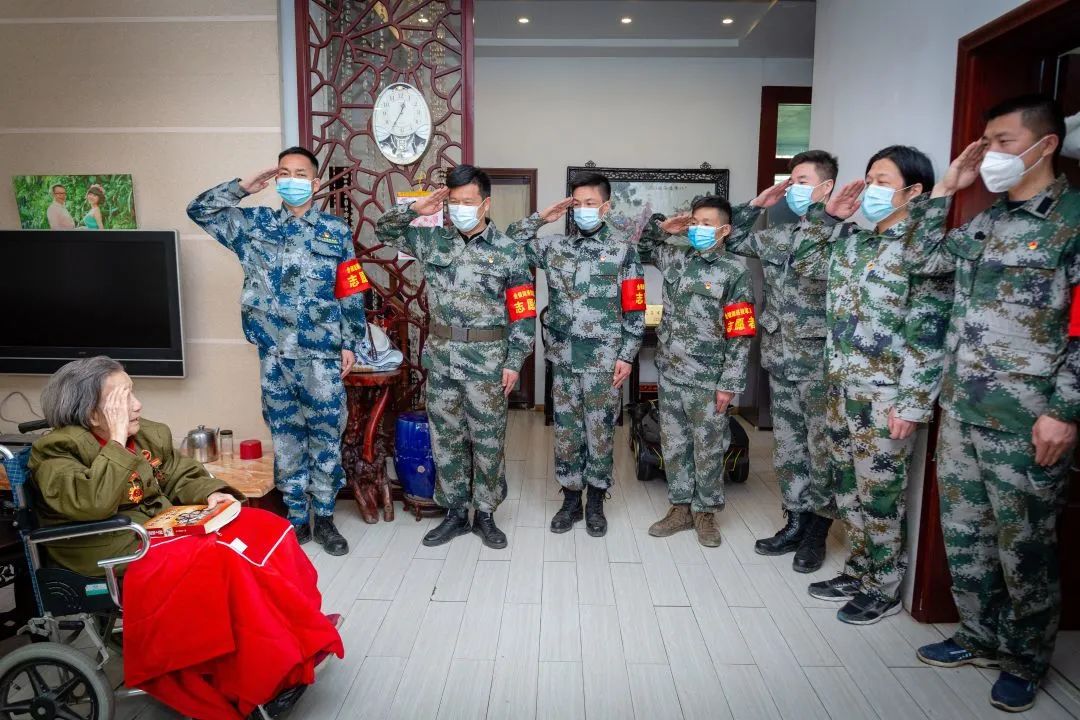 李定胜带领志愿服务队队员看望退伍老兵。(本人供图)