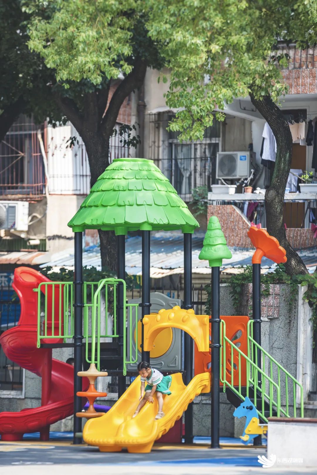 清晨6时许,家住附近的陈阿姨穿过家门口的游园去买菜,返回途中放下菜篮子,跟老姐妹们一起跳上1小时广场舞,回家做好早饭等3岁的孙子起床,过完早后,又下楼来到游园里。“公园环境变好了,卫生干净了,还多了儿童游乐设施,孩子们很喜欢在这玩,又凉快又舒服。”
