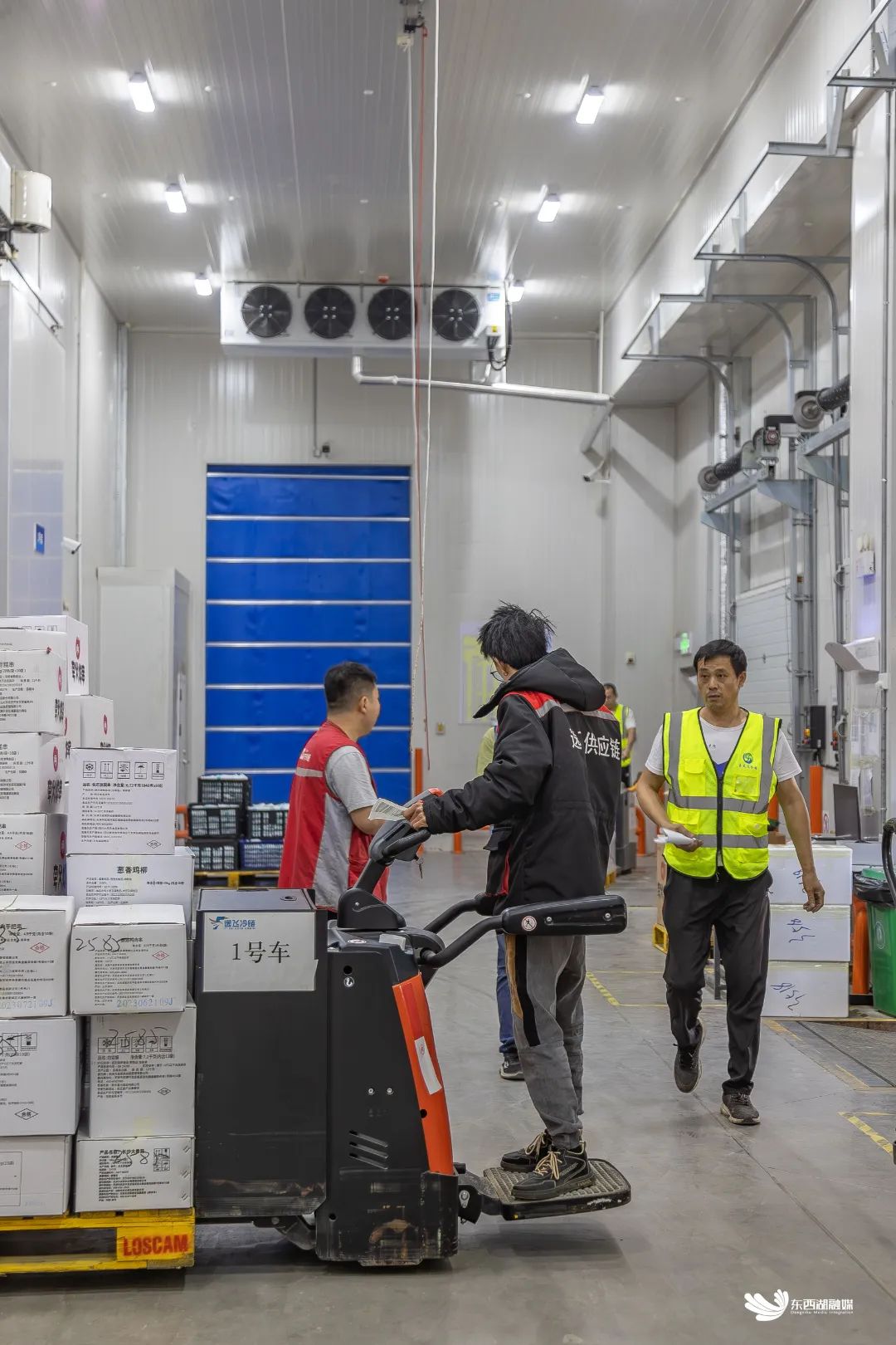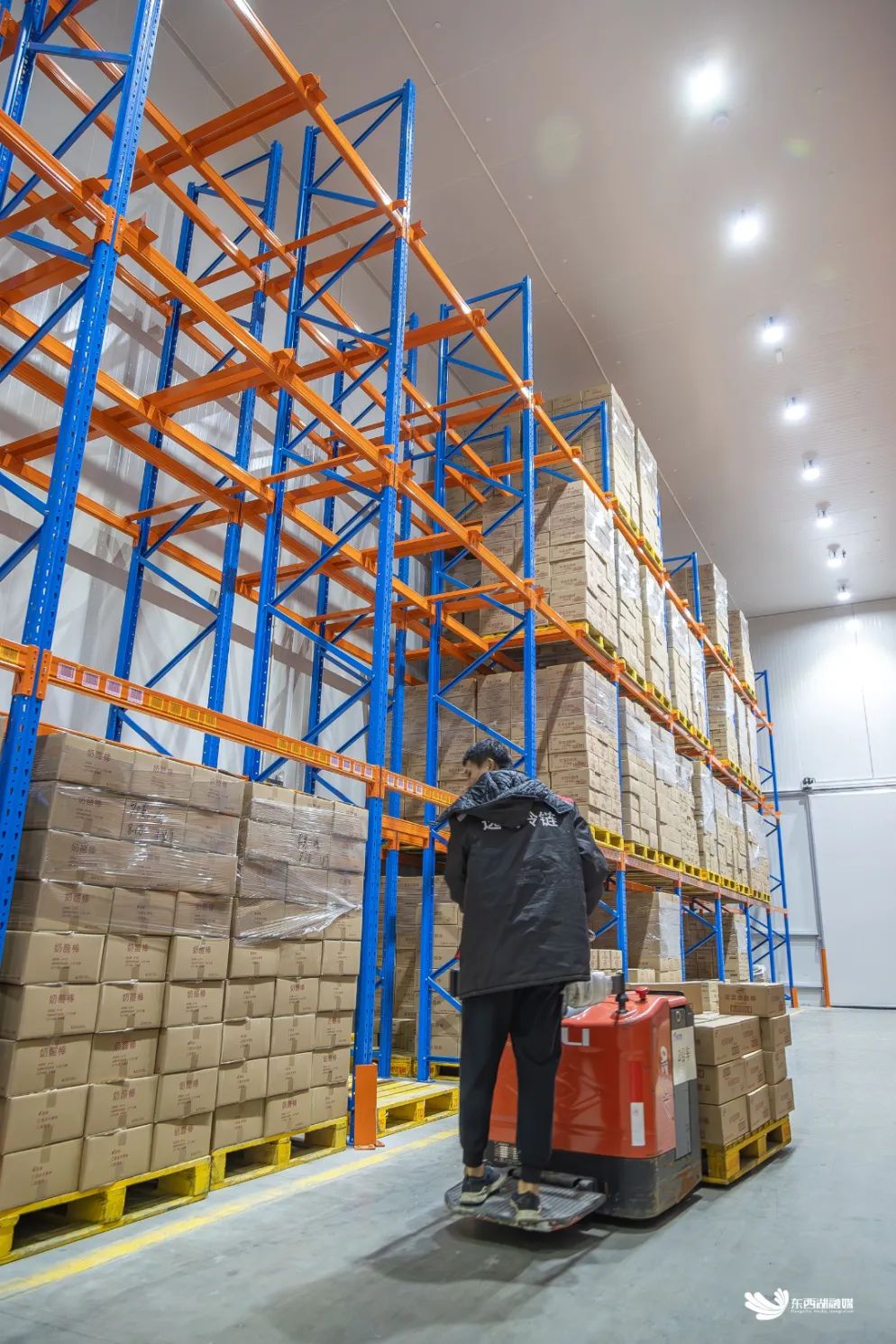 记者走进零下18℃的冷链车间,只见各类肉制品和奶制品堆满了9米多高的货架,全新的智慧分拣物流设备系统让人眼前一亮。职工操控叉车按照订单指令调取货物,快速转运至月台,再经冷链运输车发往各地。