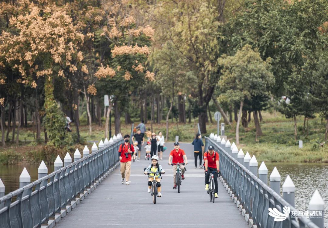 金银湖绿道是多元的绿道,无论你是为了享受独处单人出发,或是带上孩子来一场亲子时光,或是呼朋唤友来一场拉力赛,无论你是主打一个舒适随意,或是奔赴不同景点打卡,你都可以在这里找到自己想要的感觉。