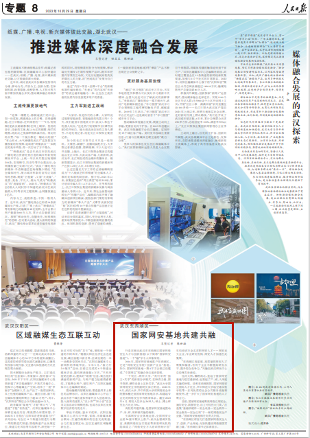 10月29日,人民日报以《国家网安基地共建共融》为标题聚焦东西湖。