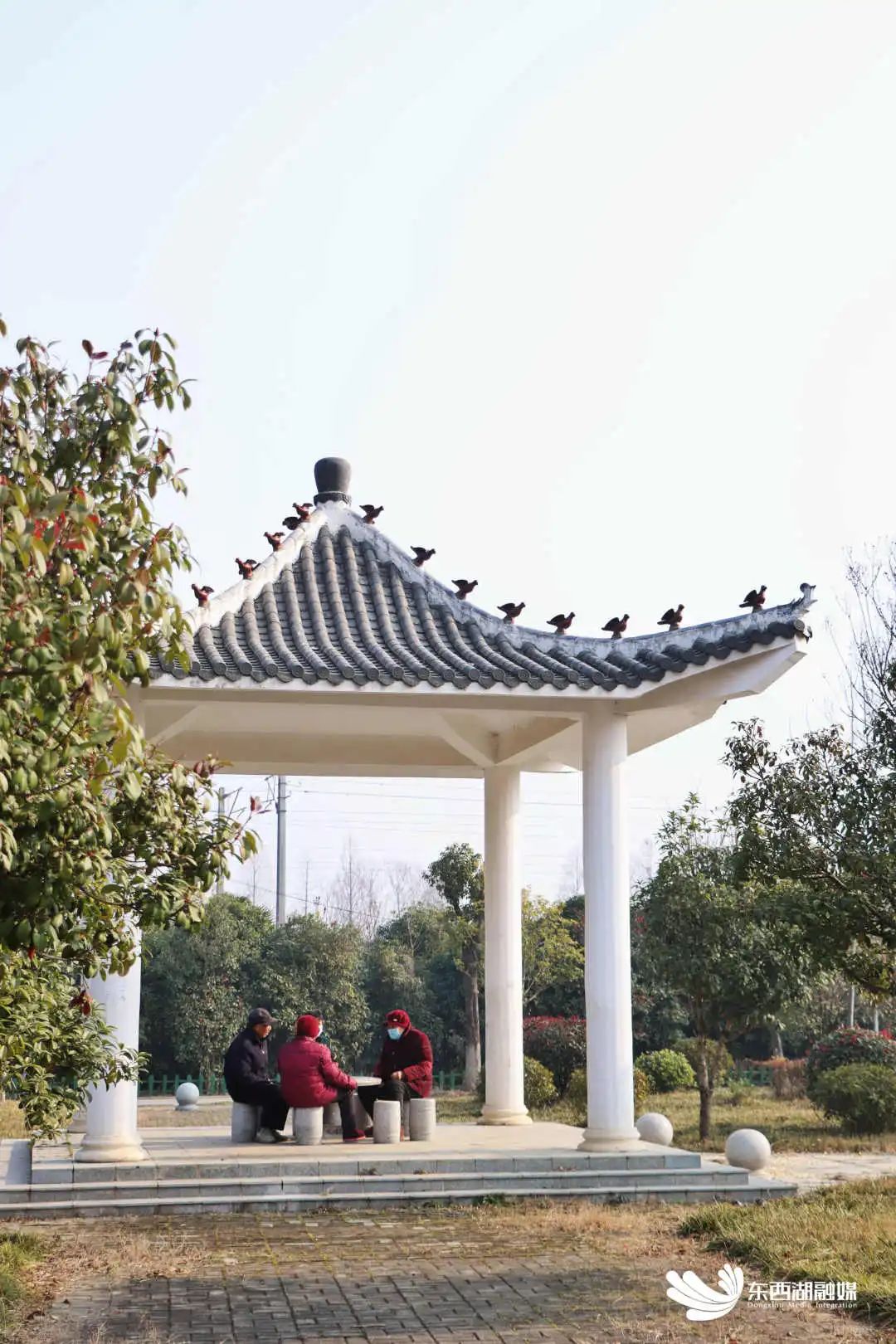 暖阳下,老人在凉亭里叙家常。