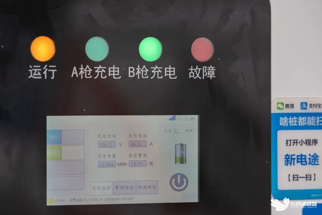 新能源充电桩屏幕上同步显示B枪充电中。