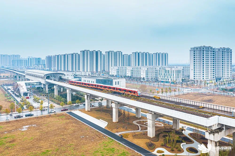 “中国红”龙年轻轨穿越国家网安基地人才社区。