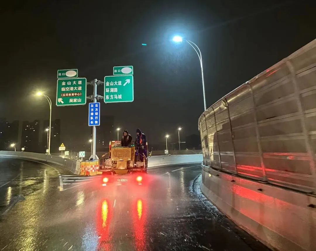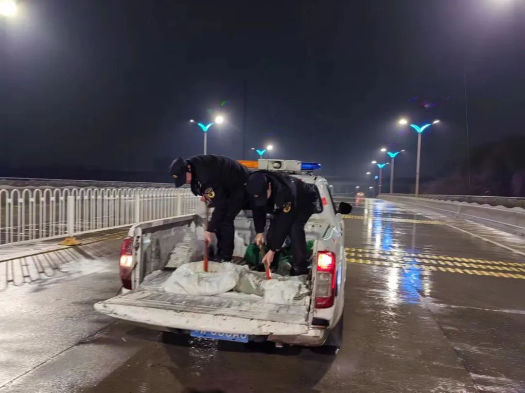 截至目前,累计出动应急保障人员500余人,车辆120台,采取人工和机械结合的方式,撒布融雪剂60吨,对易结冰点位铺设麻袋、草垫3940条,规整清理挡板、水马、断树枝等路障,保障安全顺畅。