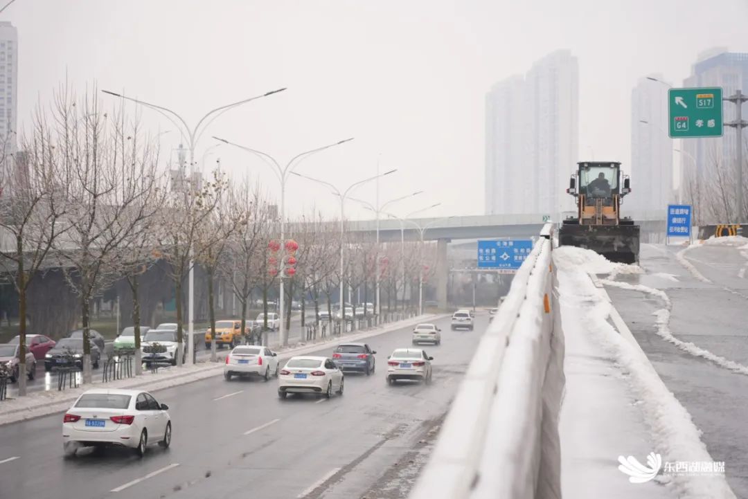 从2月1日晚上9时起,公共设施运营管理公司对海口立交桥匝道、新径线京珠桥下、新城十六路铁路涵洞、临空港大道东流港桥、S108府河特大桥、幺教湖桥进行巡查,预撒融雪剂。2月2日早上8时,对107国道-东吴大道(兴工十四路京珠桥下)-走新路(京珠桥下)-临空港大道(东流港桥)-S108(幺教湖桥、府河特大桥)、惠安大道-新城十六路铁路涵洞、海口立交桥海口二路上硚孝匝道进行应急除冰保畅。