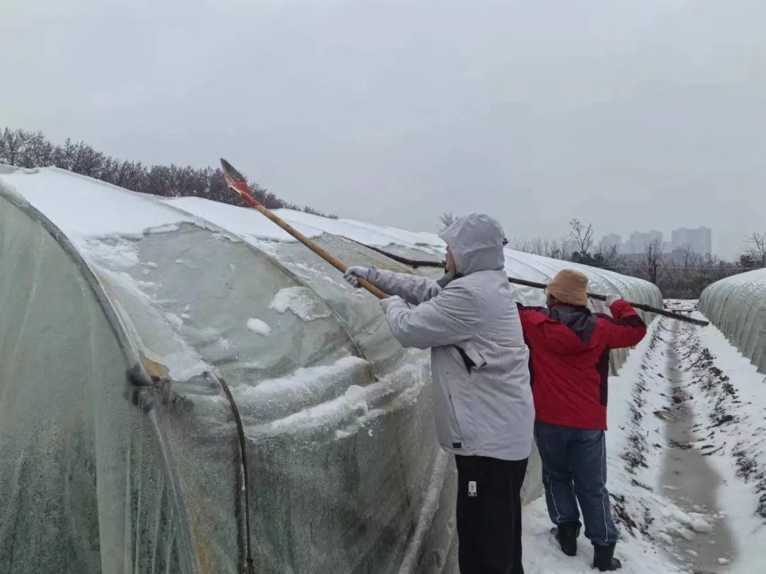 工作人员为农户大棚除雪。(通讯员供图)